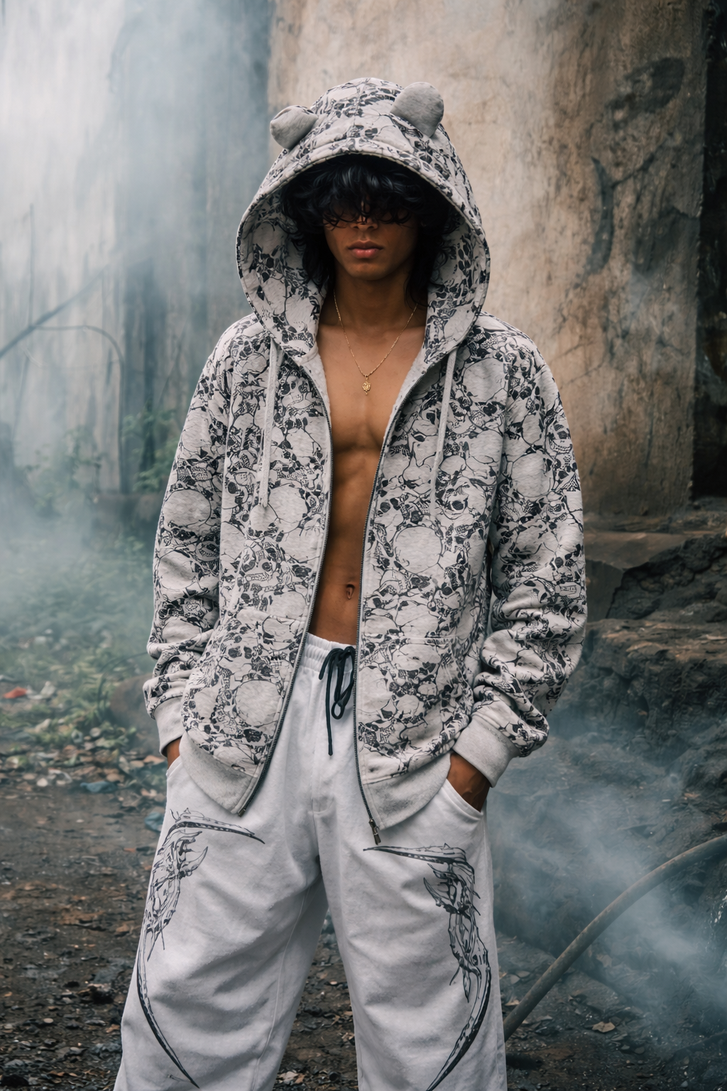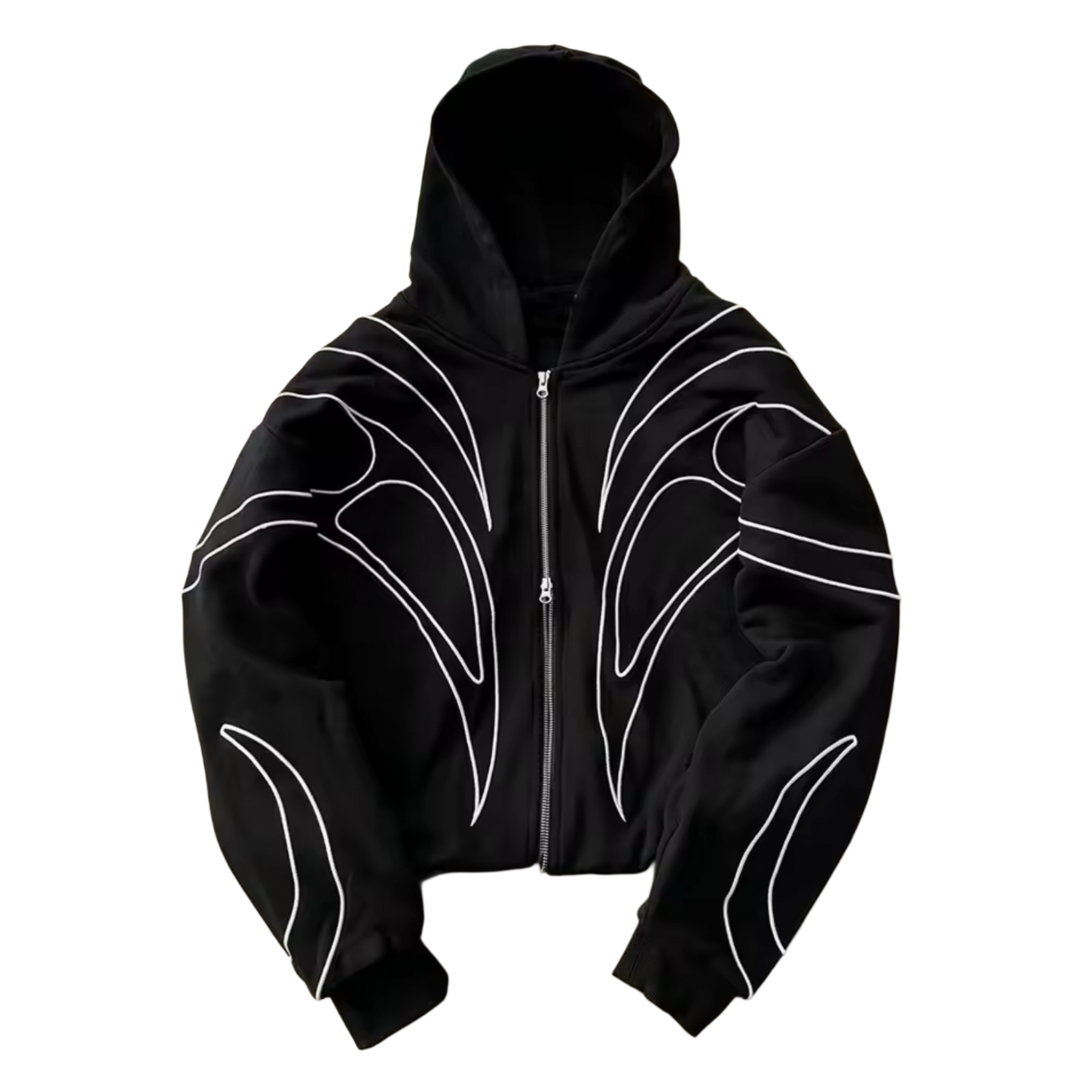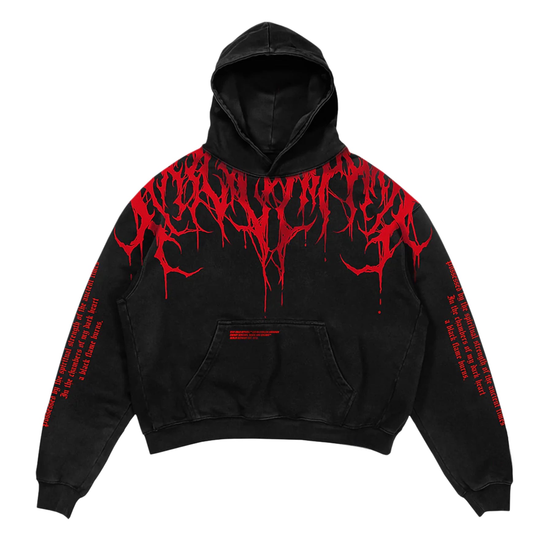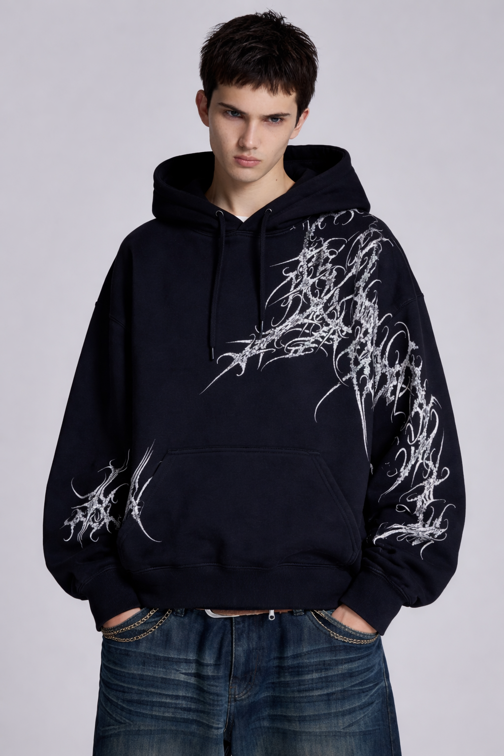 Refined darkness in its purest form. The HAV Hoodie features a deep black finish with a subtle, ornate graphic, delivering elevated comfort and a quiet, commanding presence.