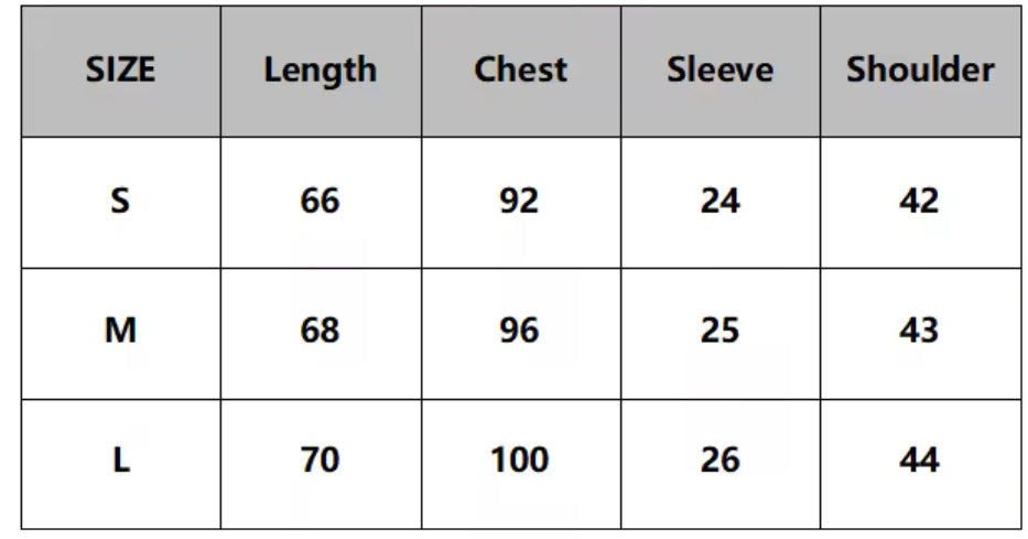 XL: Shoulder:62cm Bust:130cm Length:68cm Sleeve:48 cm